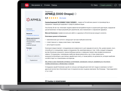 «Армед» — крупный отечественный бренд медицинской техники и товаров для реабилитации с почти 30-летней историей. В нашей компании работает более 500 сотрудников, и всех нас объединяет стремление помогать тем, кто нуждается в заботе и уходе. Наша продукция делает жизнь пациентов комфортнее.